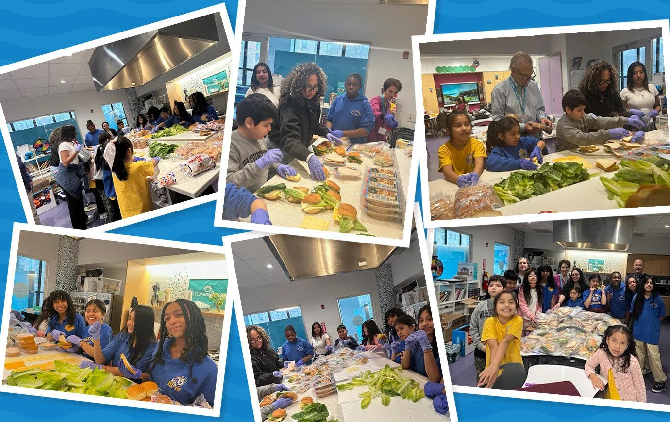 Assisting them in putting the sandwiches together were a dozen children from the Variety Boys & Girls Club of Queens, who wrote personalized notes to include with the food. Our fleet of shuttles transported the children to our site and back again.